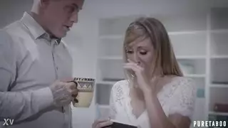 الشقراء ذات الصدور الصغيرة التي تكافح قليلاً قبل أن تمتص قضيبه