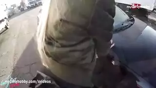 العاهرة الشقراء ترتدي التنورة القصيرة وتمارس الجنس في الأماكن العامة