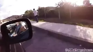 مارس الجنس وبخ في السيارة في موقف سيارات عام وشاعر ضخم